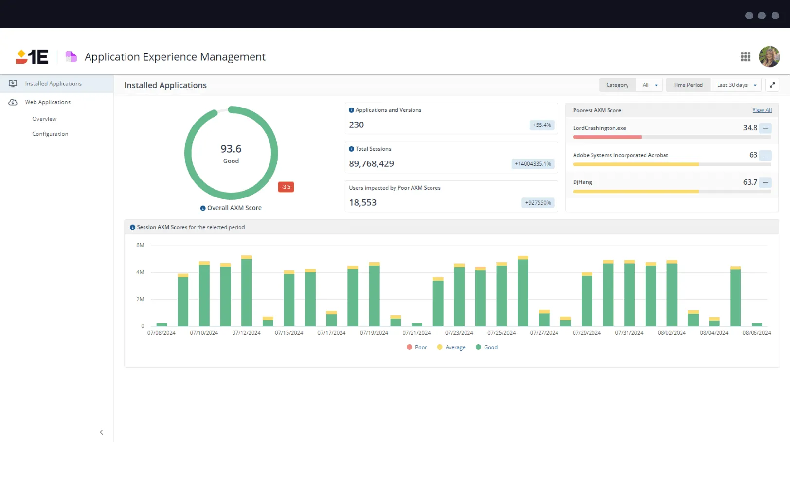 1E AXM gives you a full, insights-packed overview of on-device and web-based apps so you can enhance performance and DEX.