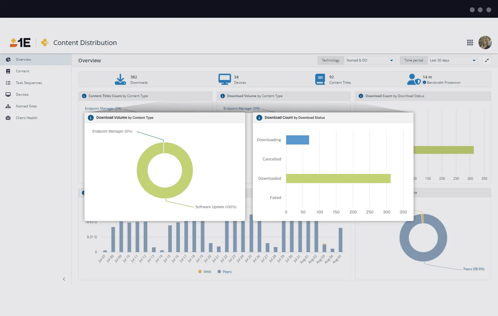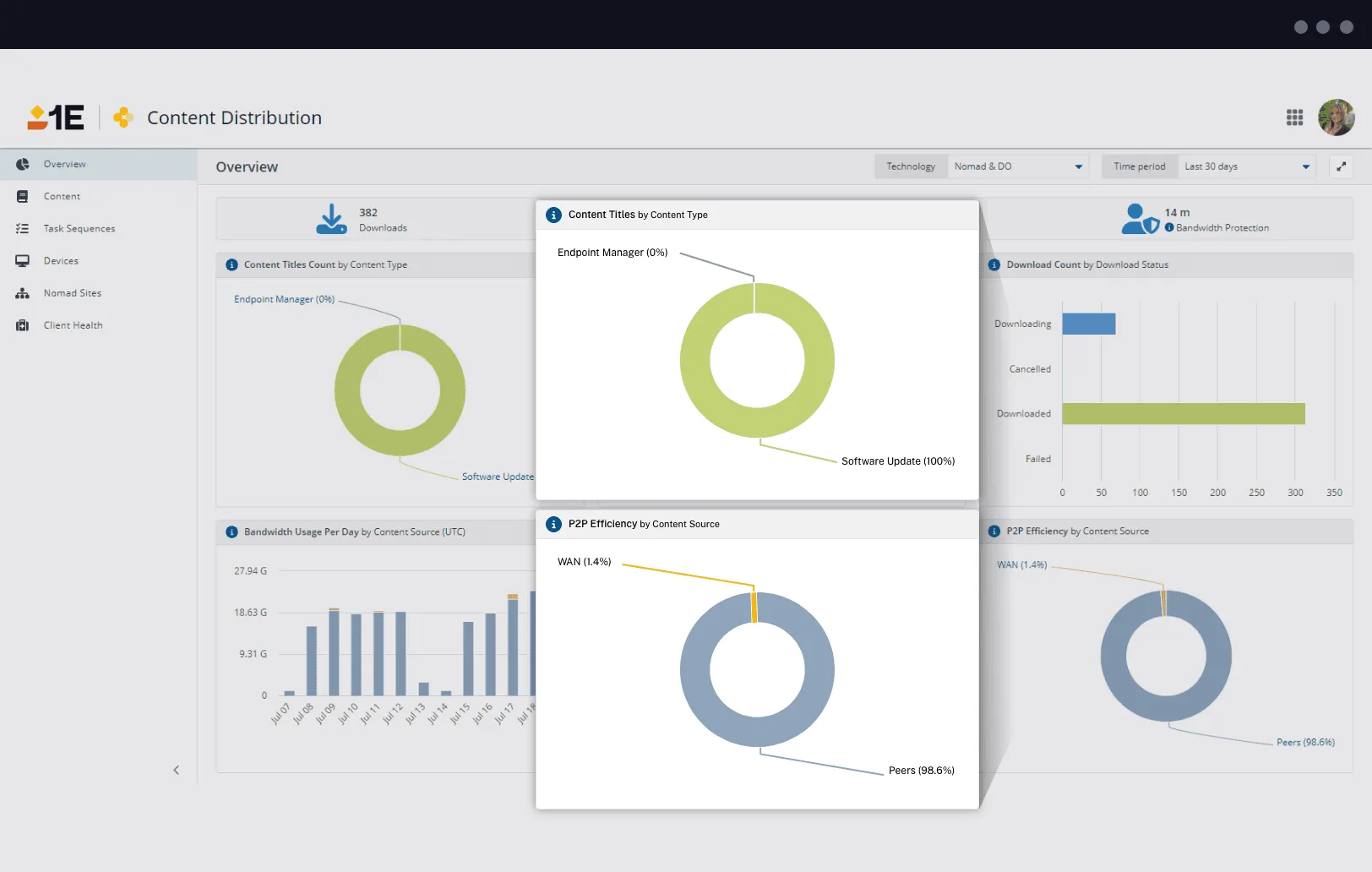 1E Content Distribution for Microsoft Configuration Manager contains everything from DEX bandwidth protection algorithm to client health visualization.