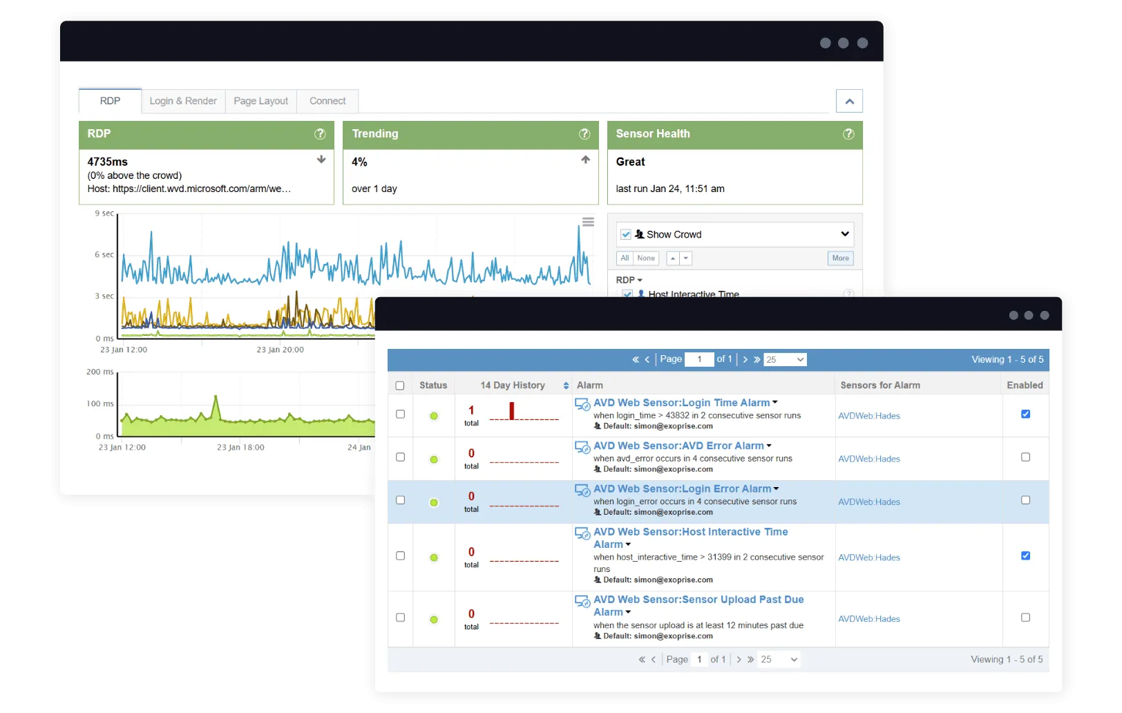 Powered by Exoprise’s Digital Experience Monitoring (DEM) tools, VDX for AVD ensures faster issue resolution, improved resource allocation, and optimized workflows. With end-to-end visibility and crowdsourced benchmarking, organizations can proactively manage their AVD environments and keep employees productive and engaged, wherever they work.