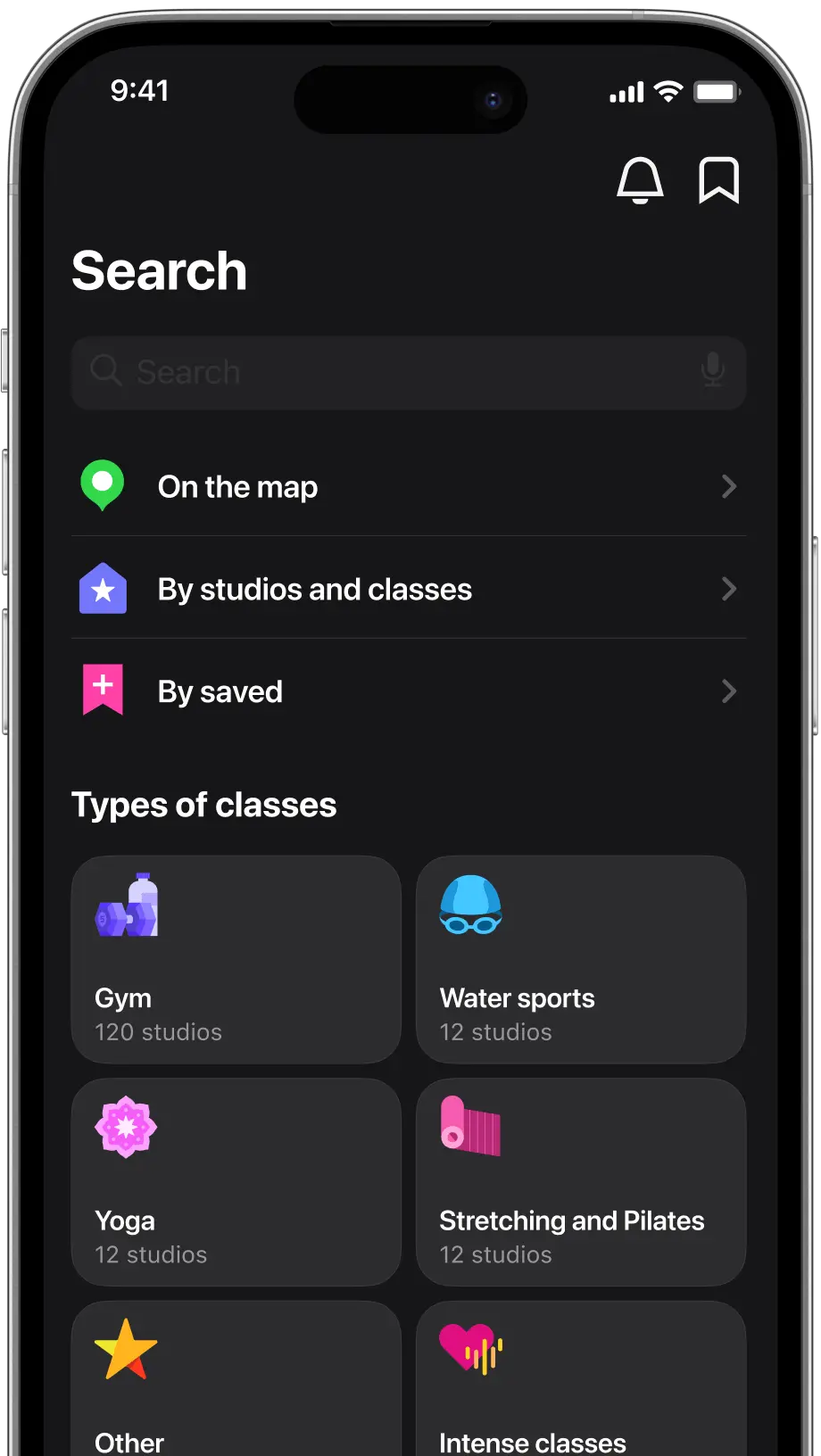 - Book classes across various studios and sports disciplines