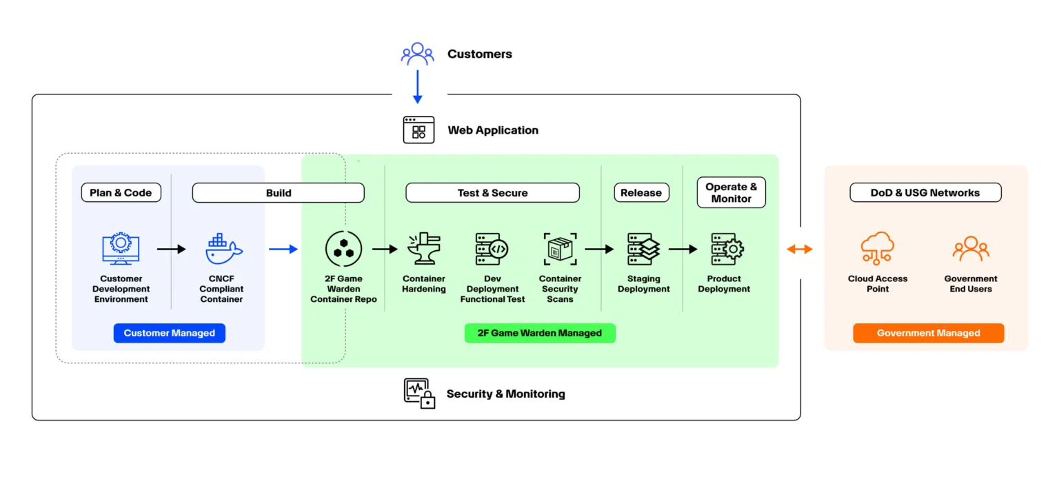 Making software compliant for government use can be prohibitively costly and time-consuming. With 2F Game Warden you can earn accreditation and obtain an authorization to deploy your application on government networks quickly and at a fraction of the cost.