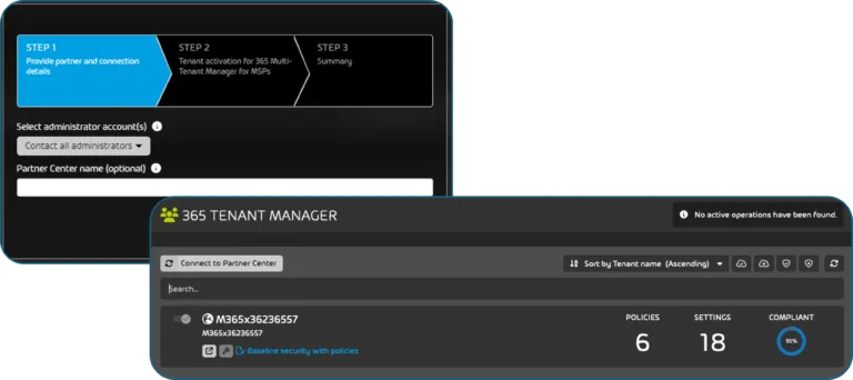 - Make adding new tenants a breeze with automatic discovery and onboarding of M365 tenants leveraging Microsoft Partner Center connection.