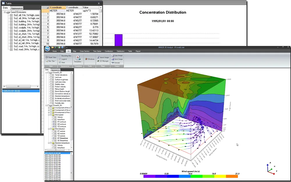 3D Visualization Create immersive three-dimensional visualizations of air dispersion models