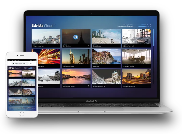 - Advanced Analytics: Track, report and analyze your traffic – within each and across all virtual tours. Who visits the tour? How long do they stay? Where do they click the most? Where do they tend to abandon the tour? Start to understand your visitors with 3DVista Cloud’s advanced analytics.