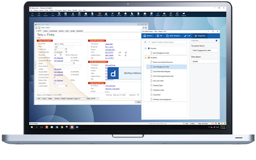 - Case Management: Captures client information, initiates workflows with legal forms, and provides reports for case activities.