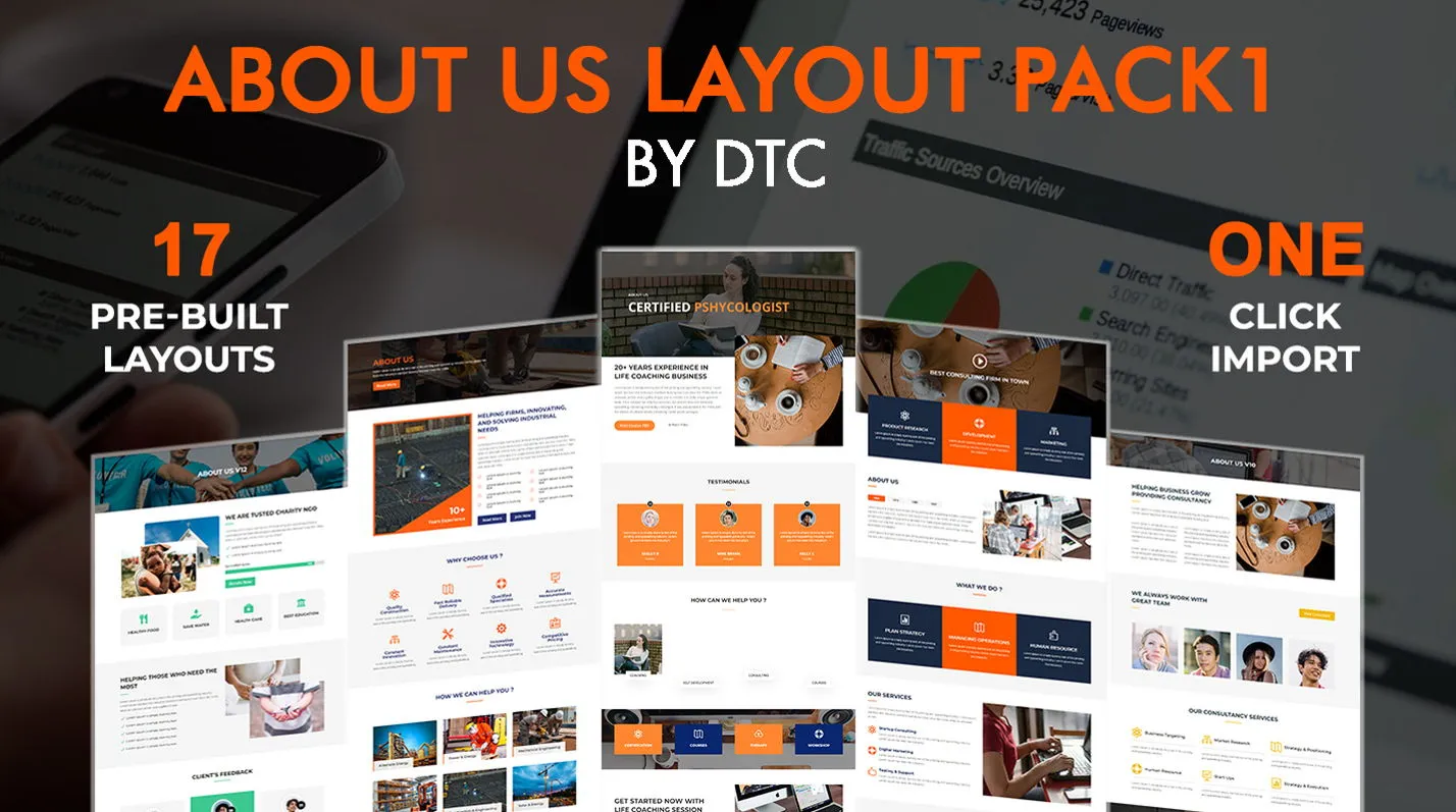 Have included total 17 about us styles where each style is created focussing specific niche and can be very easily imported in one click to setup your ‘About Us ‘ page easily .