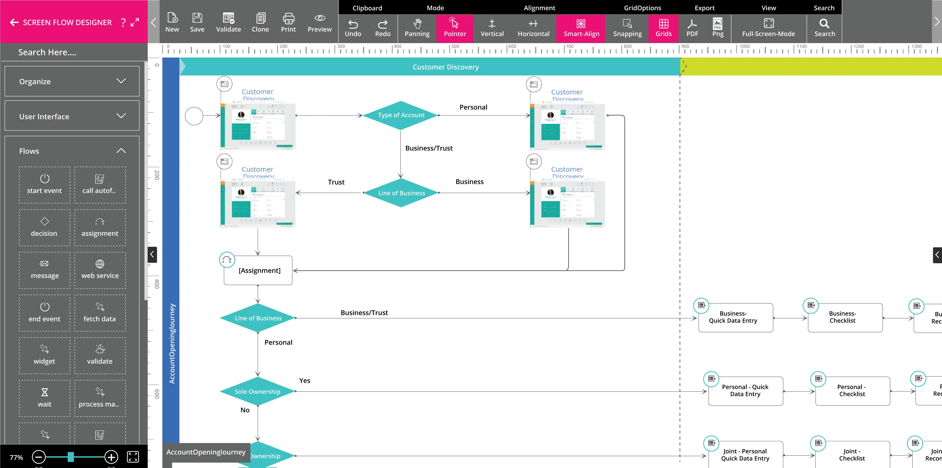 - Attractive, Responsive Screens: Modify backgrounds and add validations with a drag-and-drop designer. Design screens for change-ready journeys on the fly and intuitively define data sources and custom actions.