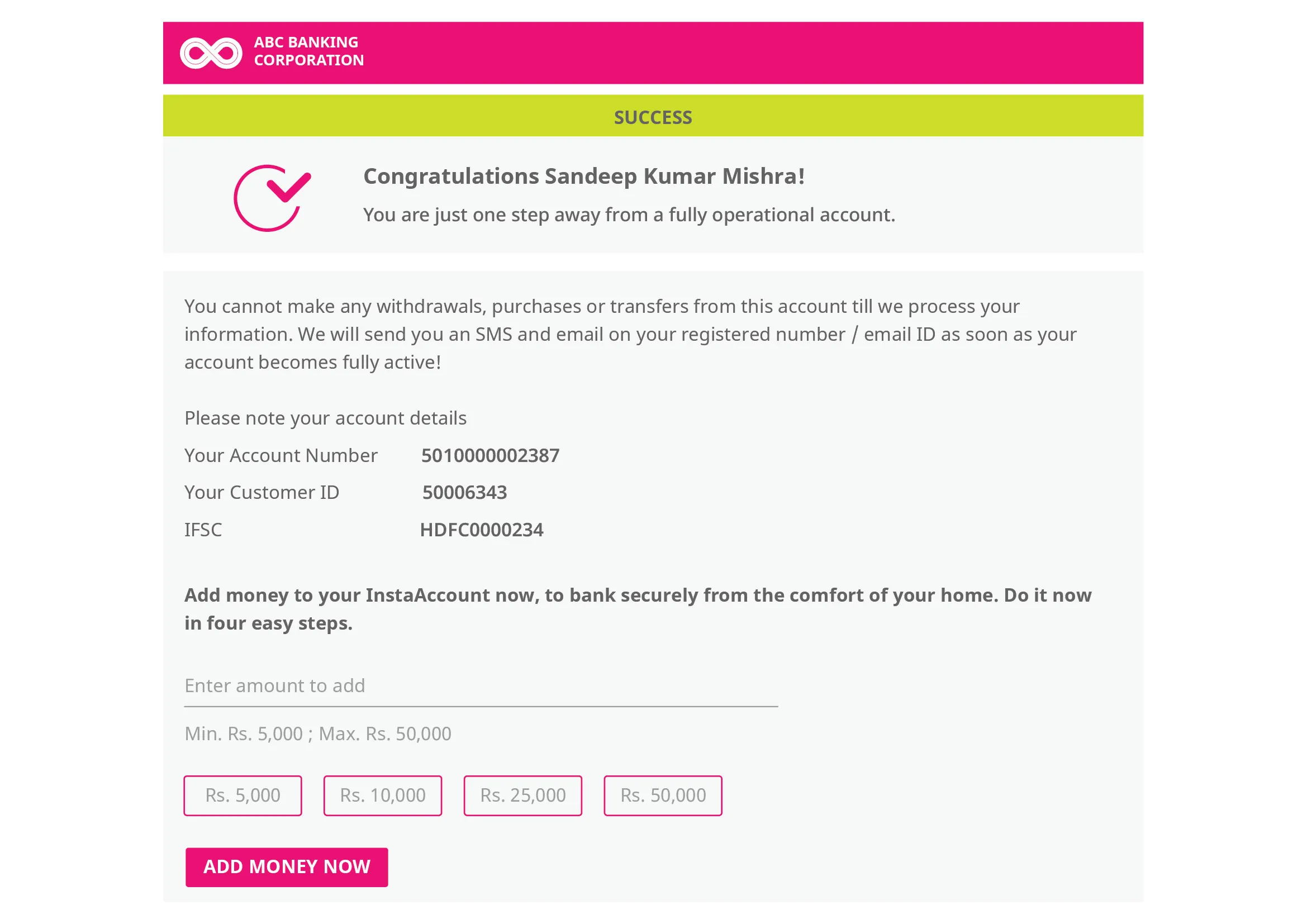 - Faster Deposit Growth: Activate accounts instantly with a unique Customer Account Number and onboarding process. Attract deposits instantly by enabling instant funding options through integrations with multiple payment gateways and core systems.