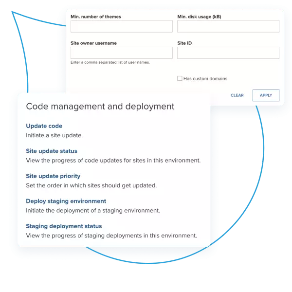 A variety of security offerings to support your multisite experience, including platform audits, vulnerability scans, and automated security updates.