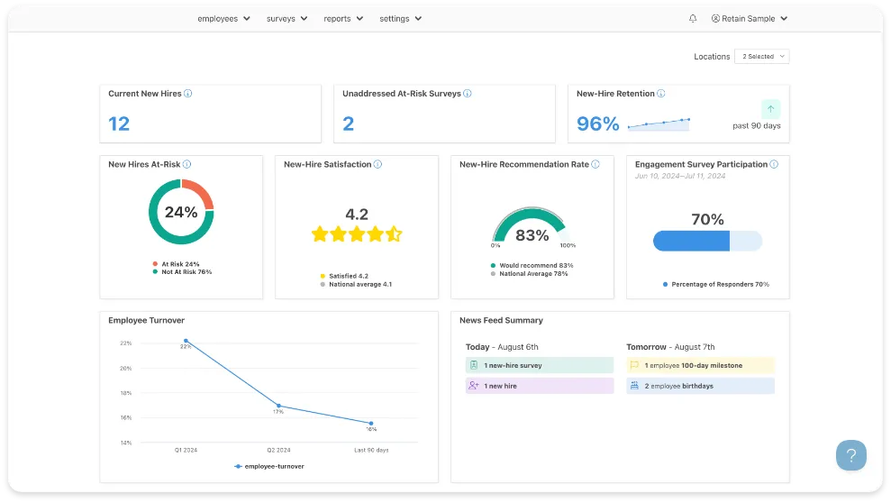 Retain is an employee retention tool developed by Activated Insights, designed to reduce turnover rates in home-based care and senior living industries. It uses a systematic feedback process to gather real-time data about new employees through surveys at key intervals during their first 100 days of employment. This approach helps organizations identify and address potential issues before they lead to employee departures, ultimately improving retention rates and reducing recruitment costs.