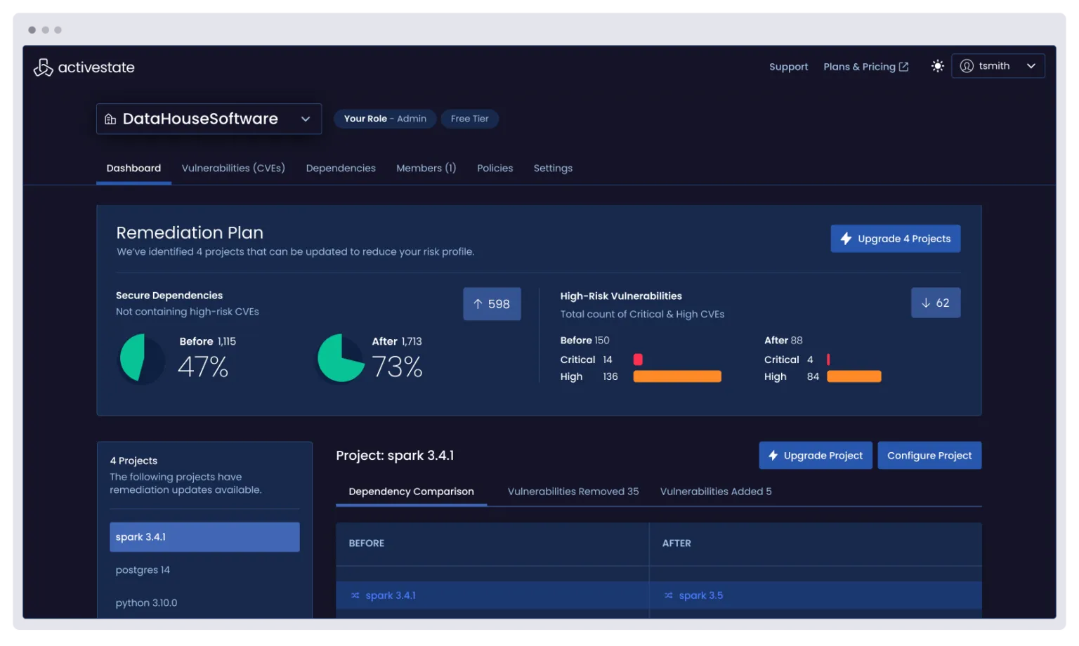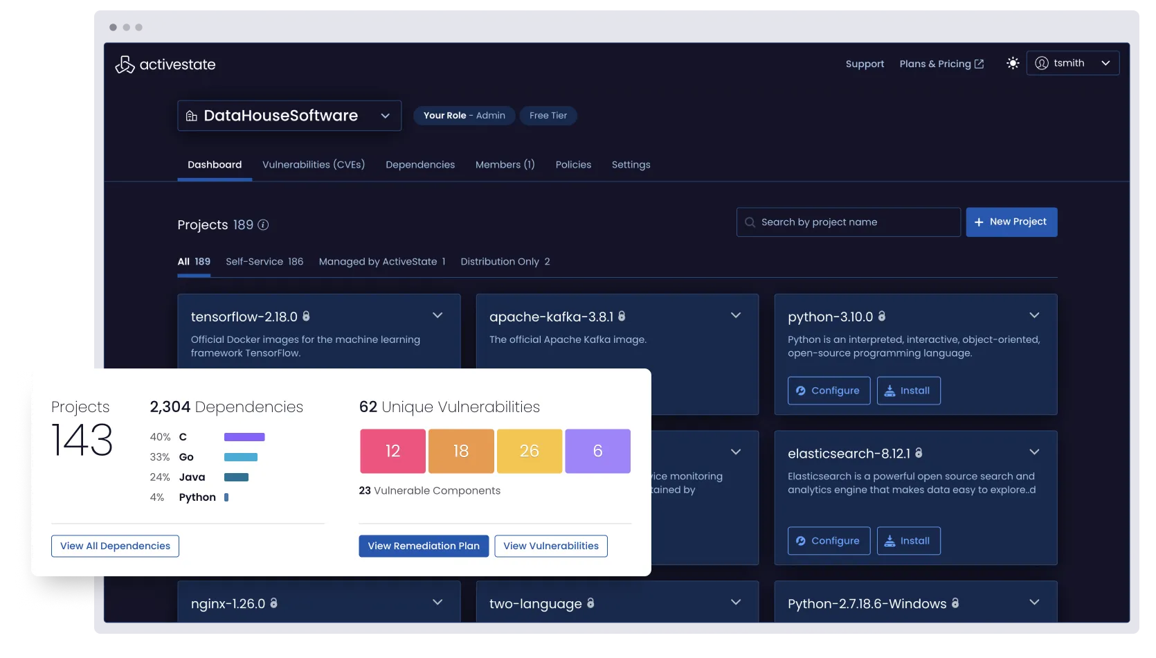 ActiveState Platform helps organizations manage their open-source software components by providing a comprehensive view of their open-source landscape. It offers real-time monitoring across Software Bills of Materials (SBOMs), repositories, and Kubernetes clusters, enabling companies to identify vulnerabilities and prioritize actions to mitigate risks.