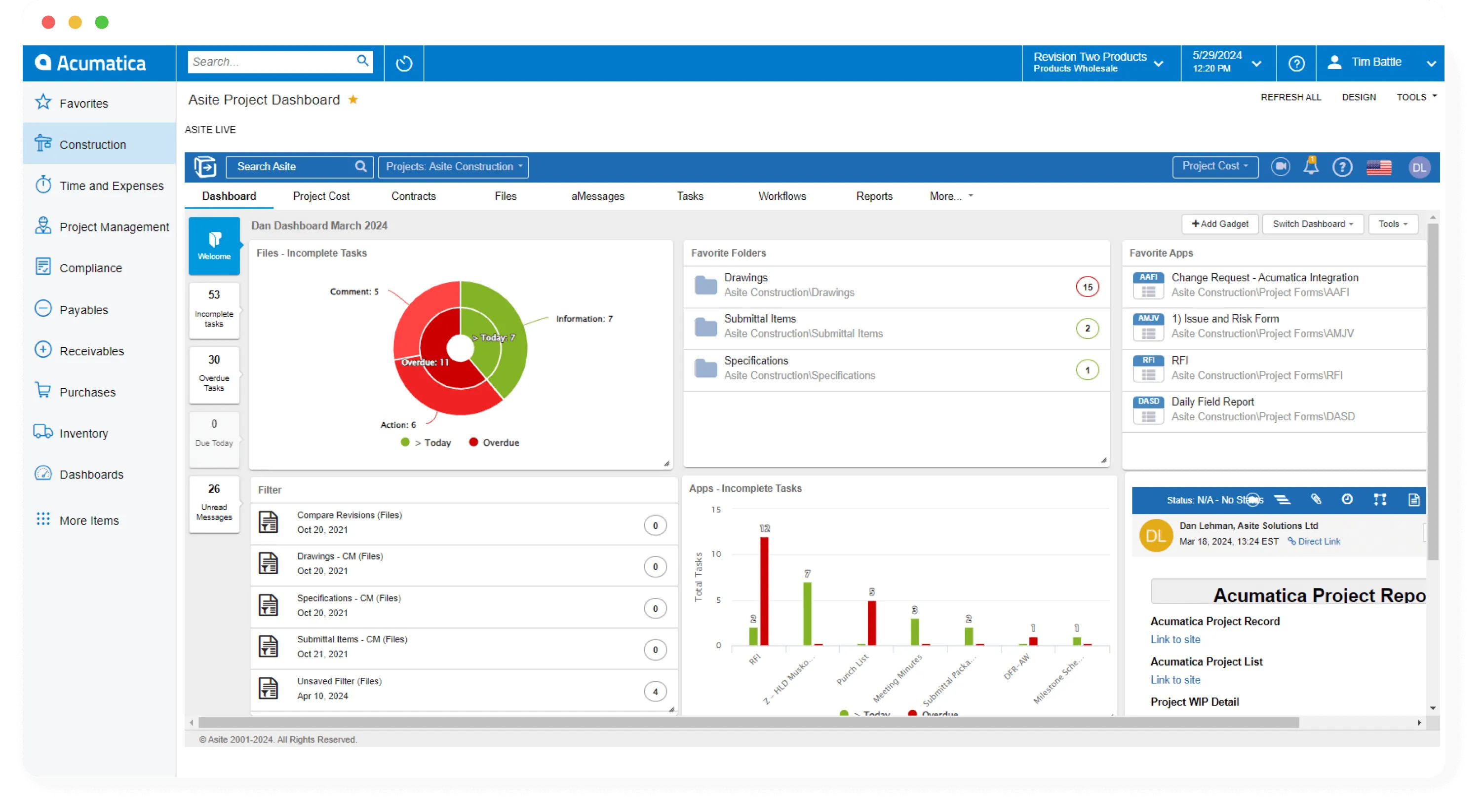 The Asite Acumatica integration is designed to seamlessly connect project management with ERP systems. It allows users to access project documents, plans, and financial data directly within Acumatica, providing a unified platform for managing both operational and financial aspects of projects. This integration enhances collaboration and decision-making by centralizing all project-related information.