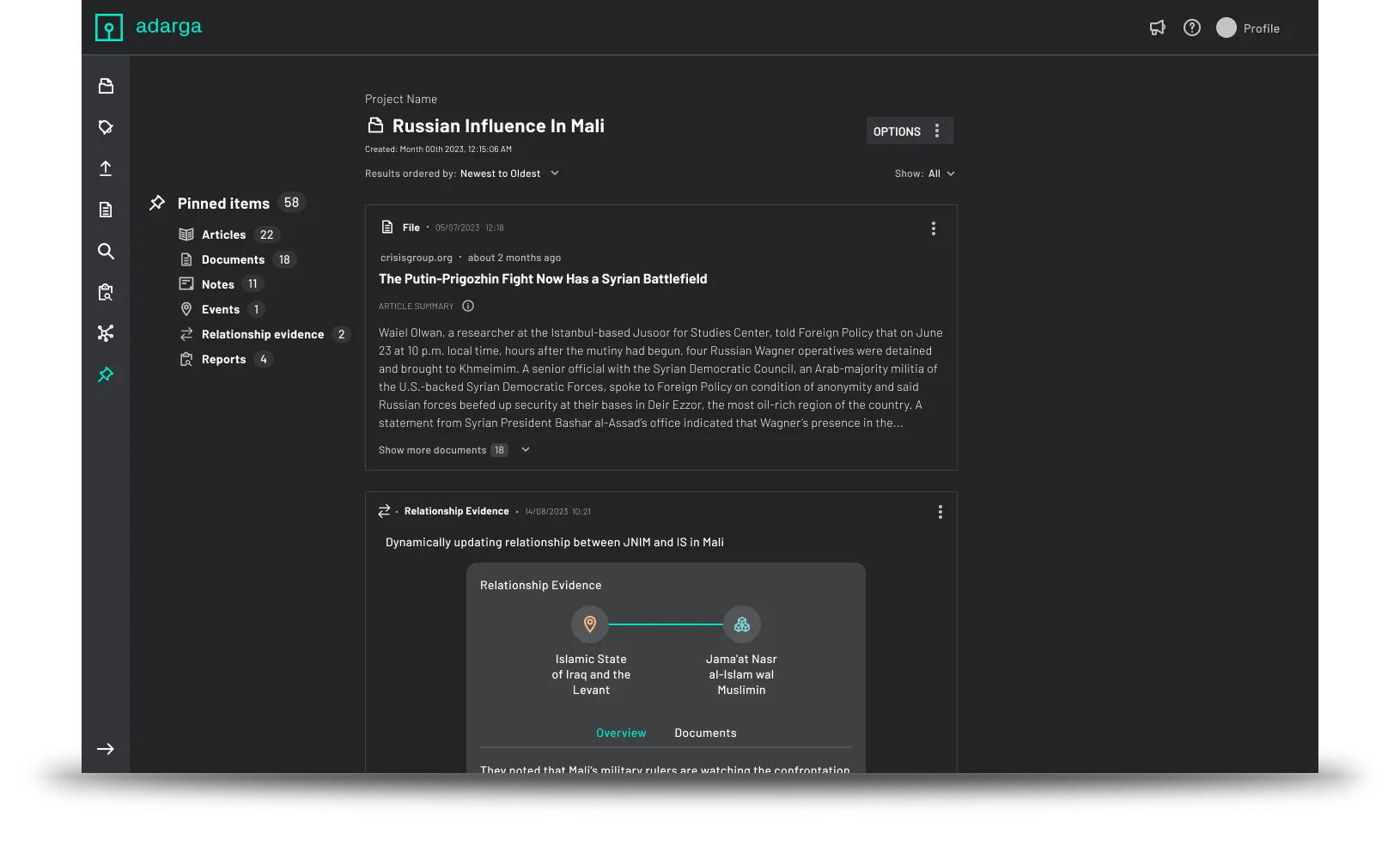 Adarga Vantage delivers decision advantage by supercharging research and analysis. It enables analysts and planners to gain a rich picture of information from millions of sources in different languages, providing dynamic insight and improved foresight to decision-makers. Built to augment human intelligence, Vantage offloads time-consuming tasks like information collection and processing, allowing users to focus on critical analysis. Designed for high-stakes environments, Vantage ensures responsible AI deployment with fully evidenced, transparent outputs.