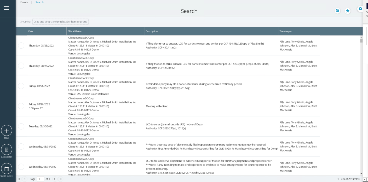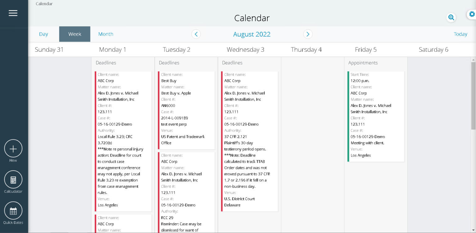 Legal calendar, docket, and matter management solution reducing malpractice risk with rules-based, configurable date calculations.