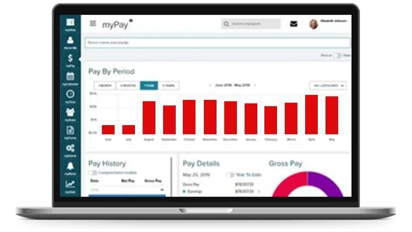 - A personalized and intuitive online experience for your Employees to explore their pay information.