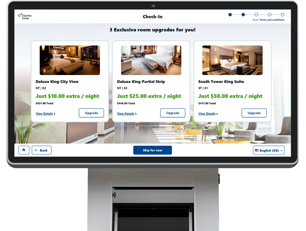 Reduce overhead and avoid front-desk queues through self-service that "does it all." Whether through mobile or kiosk, check in, upgrade, get keys, and head straight to room.