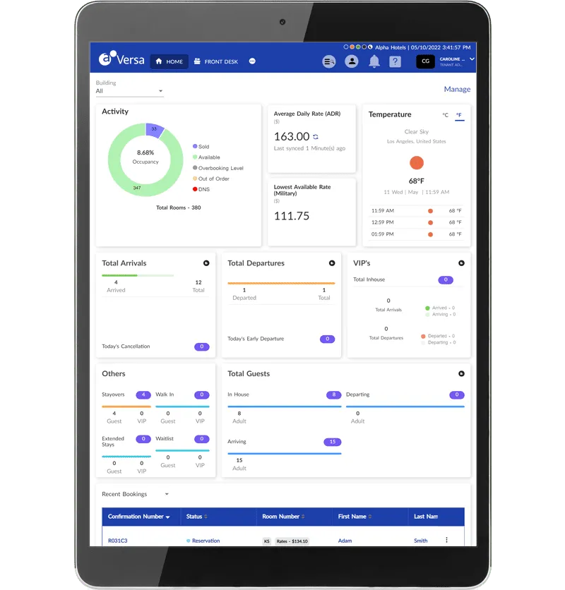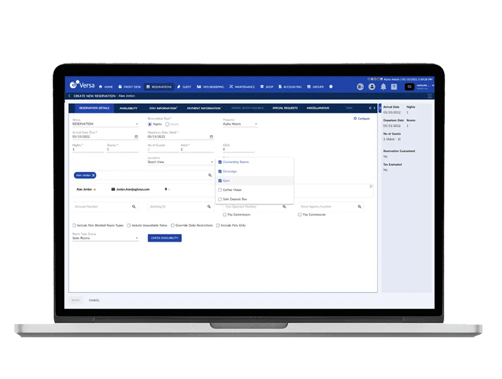 Everything you need to create a memorable guest experience. Nothing you don’t. Agilysys Versa is a comprehensive hotel PMS with reservations management, guest data, housekeeping management, a mobile dashboard and more.