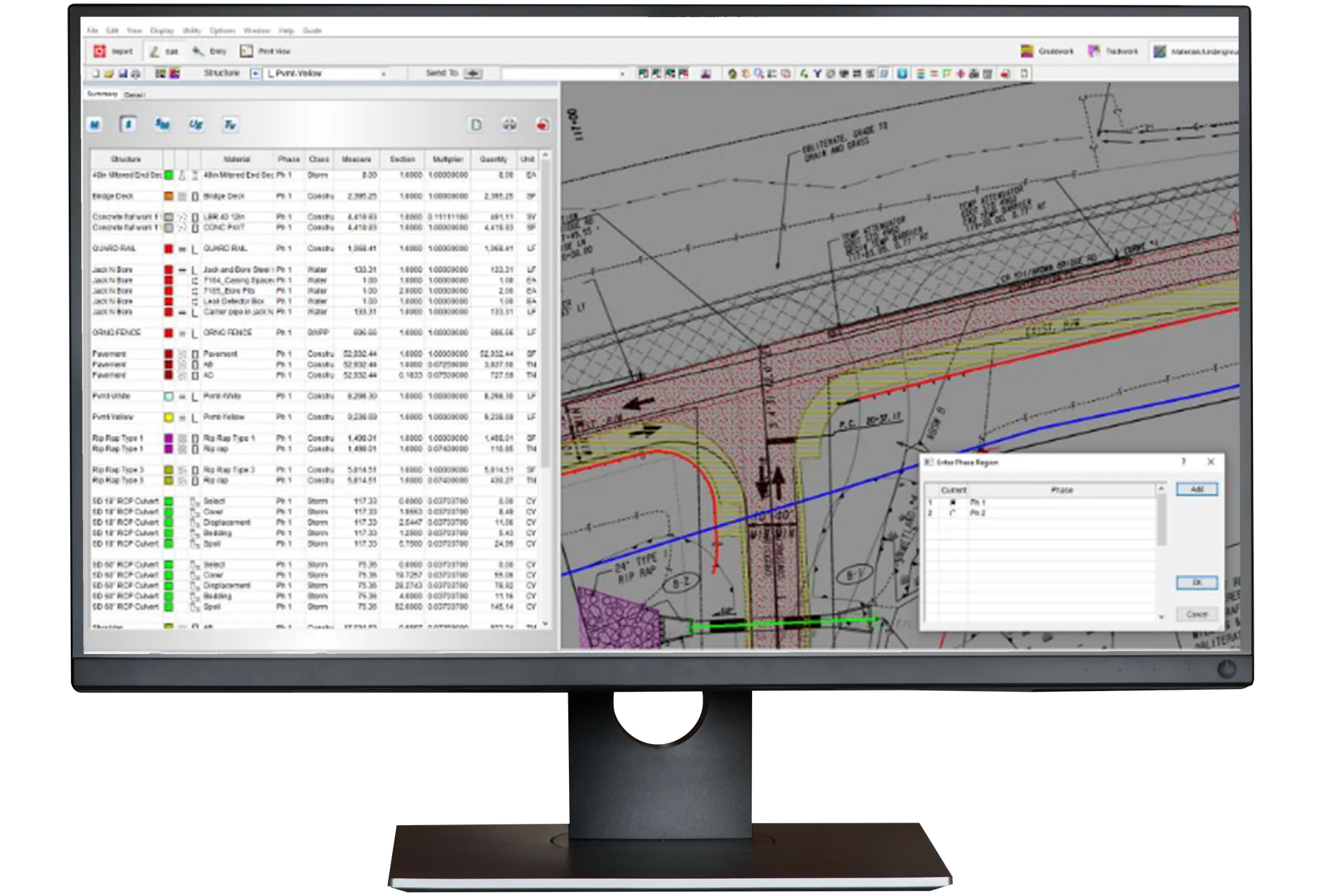 AGTEK's Materials is a graphical on-screen takeoff system designed for contractors to streamline the estimation of construction materials. By integrating intuitive data entry with flexible reporting, it enhances the efficiency and accuracy of material takeoffs. Materials seamlessly integrates with AGTEK's Gradework dirt takeoff, allowing users to measure lengths, areas, and counts, and then convert these measurements into specific material quantities such as concrete yards, asphalt tons, guardrail lengths, fitting counts, and more.