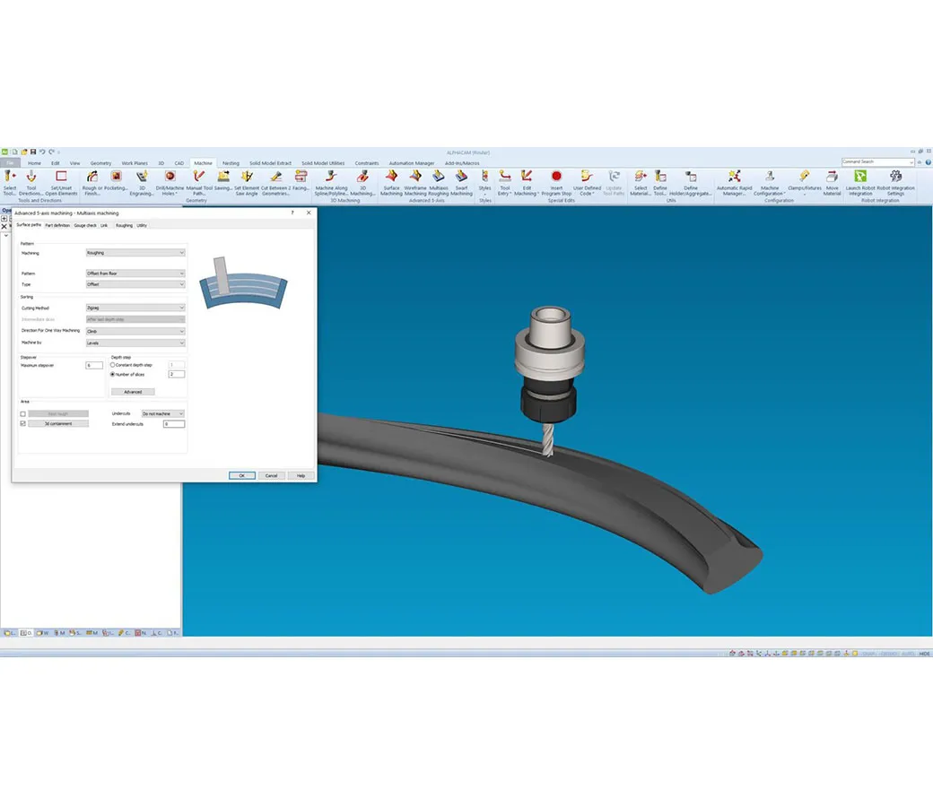 ALPHACAM xSimultaneous offers support for 5-axis machinery with fully interpolating heads.