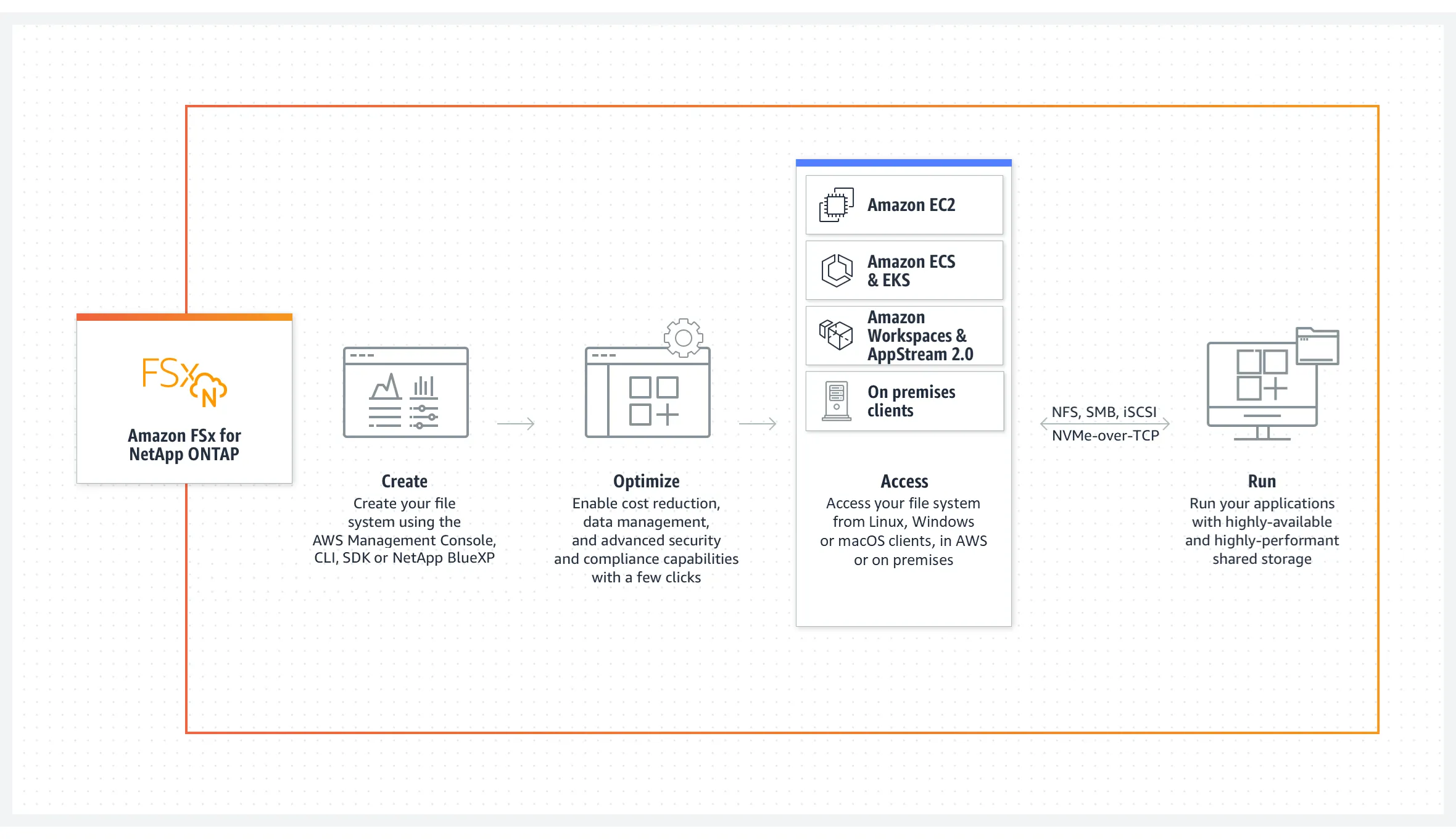 Migrate and build applications quicker with ONTAP's data access and data management capabilities on AWS.