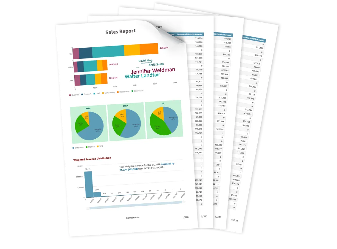Create, schedule, and share reports and data exports from a single, fully managed, cloud-based business intelligence (BI) solution. Your users can start creating and sharing customized and pixel-perfect paginated documents from day one with the straightforward QuickSight interface.