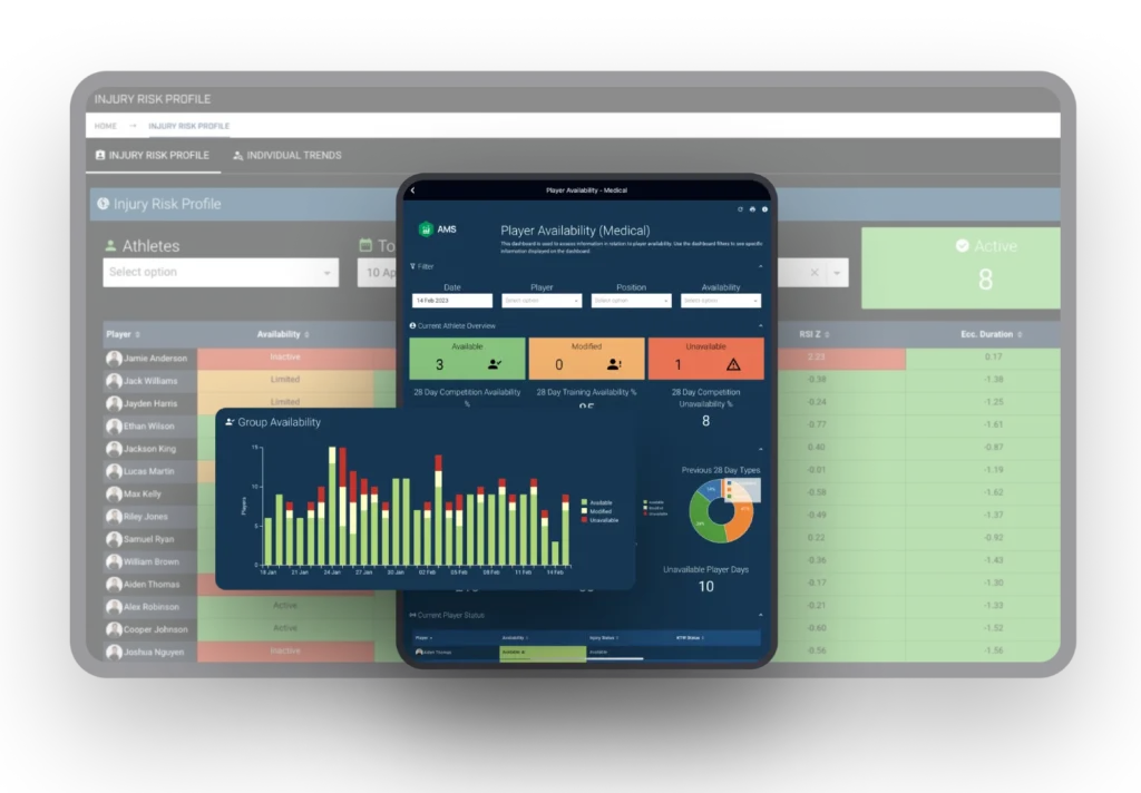 - **Improve Athlete Availability & Readiness: **Centralize and analyze load, testing, nutrition, and survey data to create personalized programs that help each athlete be available and ready to perform at their best.