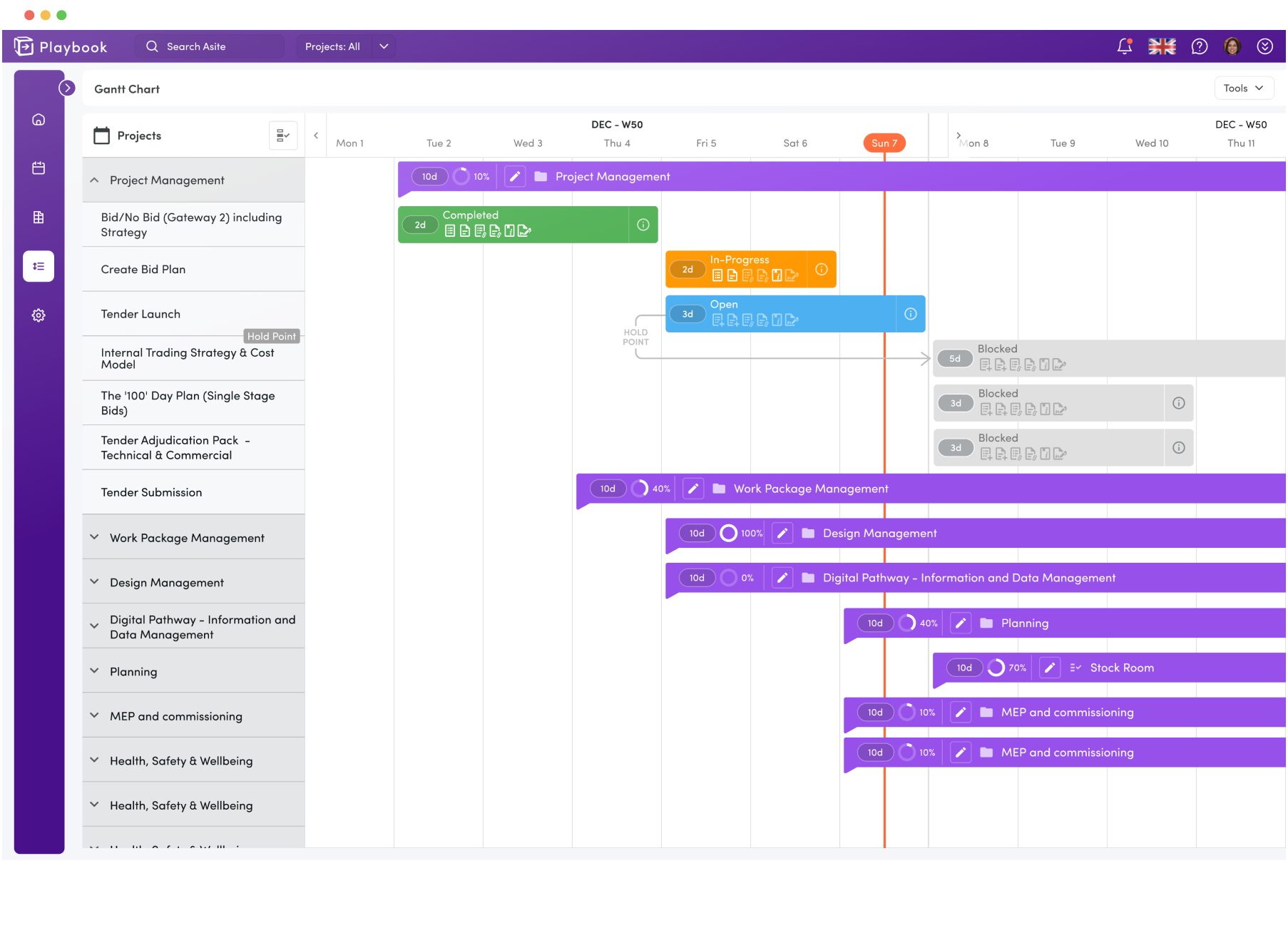 Asite Playbook is a project management tool designed to enable Project Information Managers to quickly and easily configure information delivery processes and schedules on projects. It enhances collaboration and efficiency by providing a visual interface for tracking project progress and managing workflows.