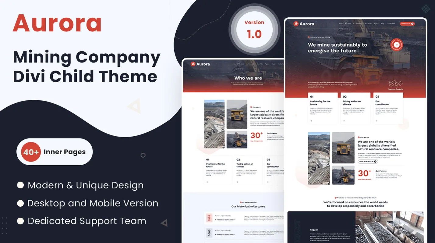 Divi Mining is a professionally crafted Divi child theme designed specifically for mining companies, industrial services, construction firms, and heavy equipment businesses. With 40+ pre-built pages, this theme delivers a powerful and modern web presence for businesses operating in tough industries.