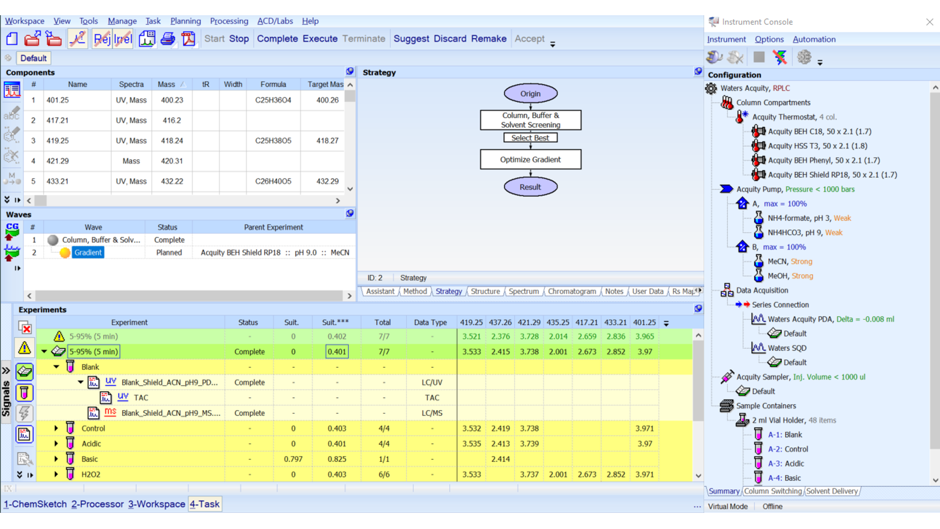 - Walk away, and AutoChrom Online will run your experiments automatically according to your strategy Find optimal conditions by simulation