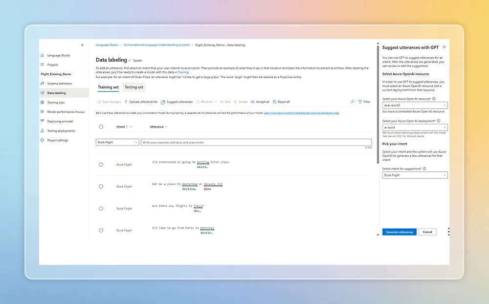 - **Customize your conversational AI language models: **Build your copilot apps with CLU and custom question answering to customize multilingual models that identify intentions and extract information for efficient agent routing, and create bots to answer questions about your business.