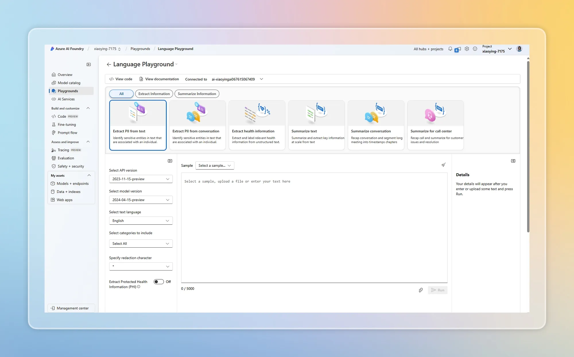 - **Protect personal sensitive data: **Detect and redact personal data before storing or retrieving it in your application workflows.