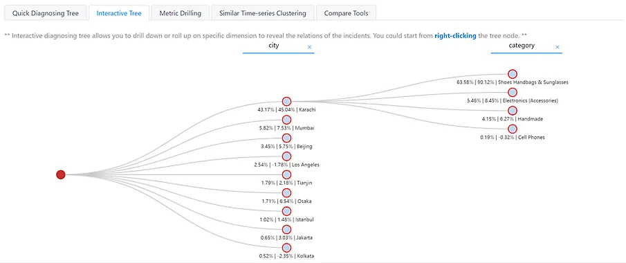 - All dimension combinations are analyzed to pinpoint affected areas for root-cause analysis and diagnoses, and send alerts