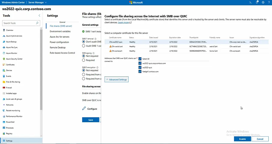 - Access innovative capabilities for Windows Server on Azure - Patch without rebooting your Windows Server virtual machines with Hotpatch, only on Azure. - Easily migrate your workloads to Azure by extending on-premises IP subnets and preserving the original private IP addresses. - Securely access files when working remotely without a VPN using built-in SMB over QUIC, a secure file-serving protocol.
