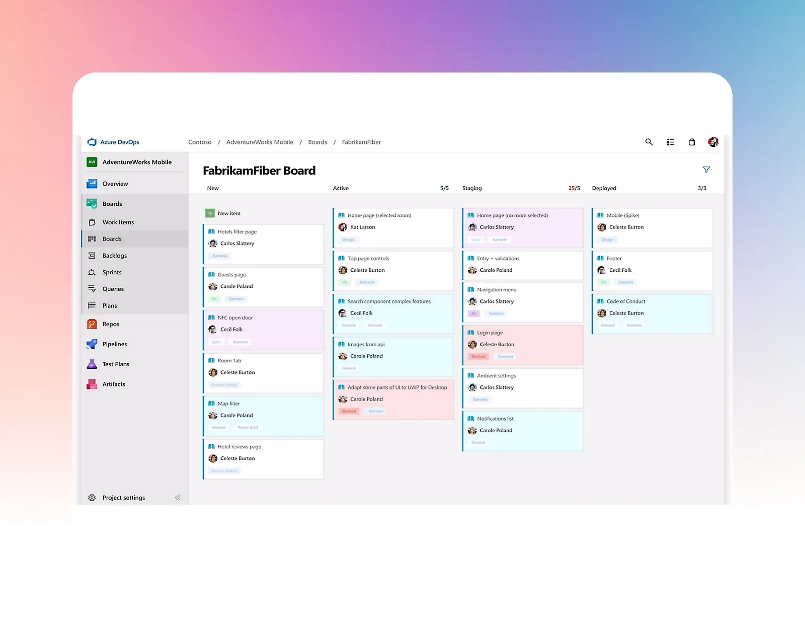 Azure DevOps Boards: Streamline project management with agile tools for tracking work, planning sprints, and collaborating efficiently.