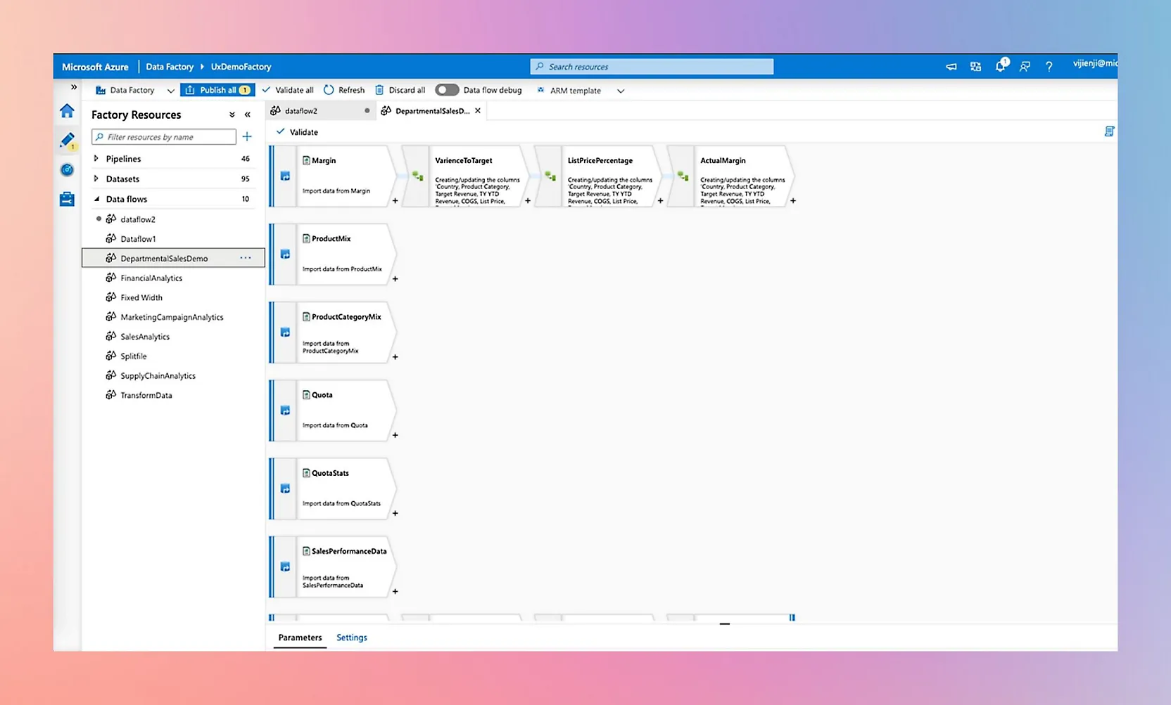 Consolidate all your data with Azure Data Factory, a fully managed, serverless data integration service. Visually integrate data sources with more than 90 built-in, maintenance-free connectors at no added cost. Easily construct extract, transform, and load (ETL) and extract, load, and transform (ELT) processes code-free in an intuitive environment or write your own code. Then deliver integrated data to Azure Synapse Analytics to unlock business insights.