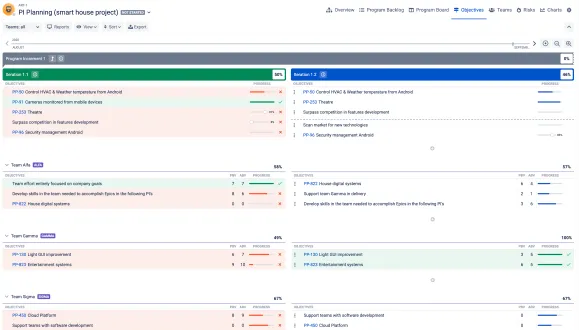 Create Roadmaps fully compliant with the Scaled Agile Framework® requirements. Plan Sprints, Program Increments, and ARTs. Set goals for PIs and sprints, as well as for the whole company or specific teams.