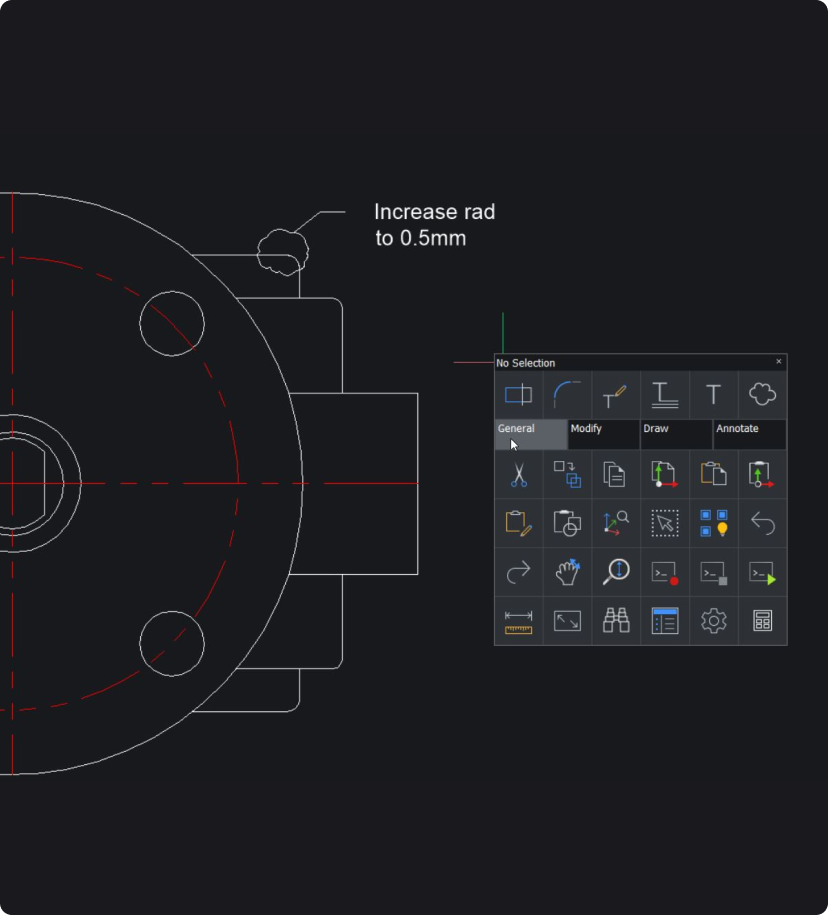 - 2D Drafting: Quickly create detailed drawings with a comprehensive set of intelligent drafting tools. Customize via LISP and run existing LISP code to handle industry-specific workflows.