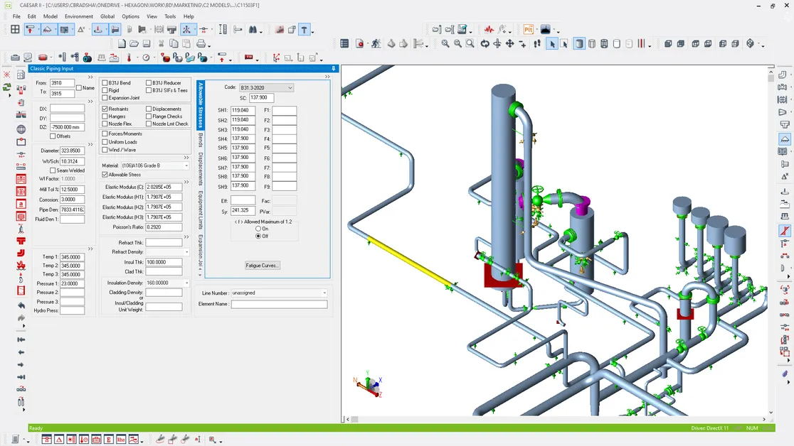 - Comprehensive Analysis: Performs static and dynamic analysis of piping systems, including stress, displacement, and load evaluations.