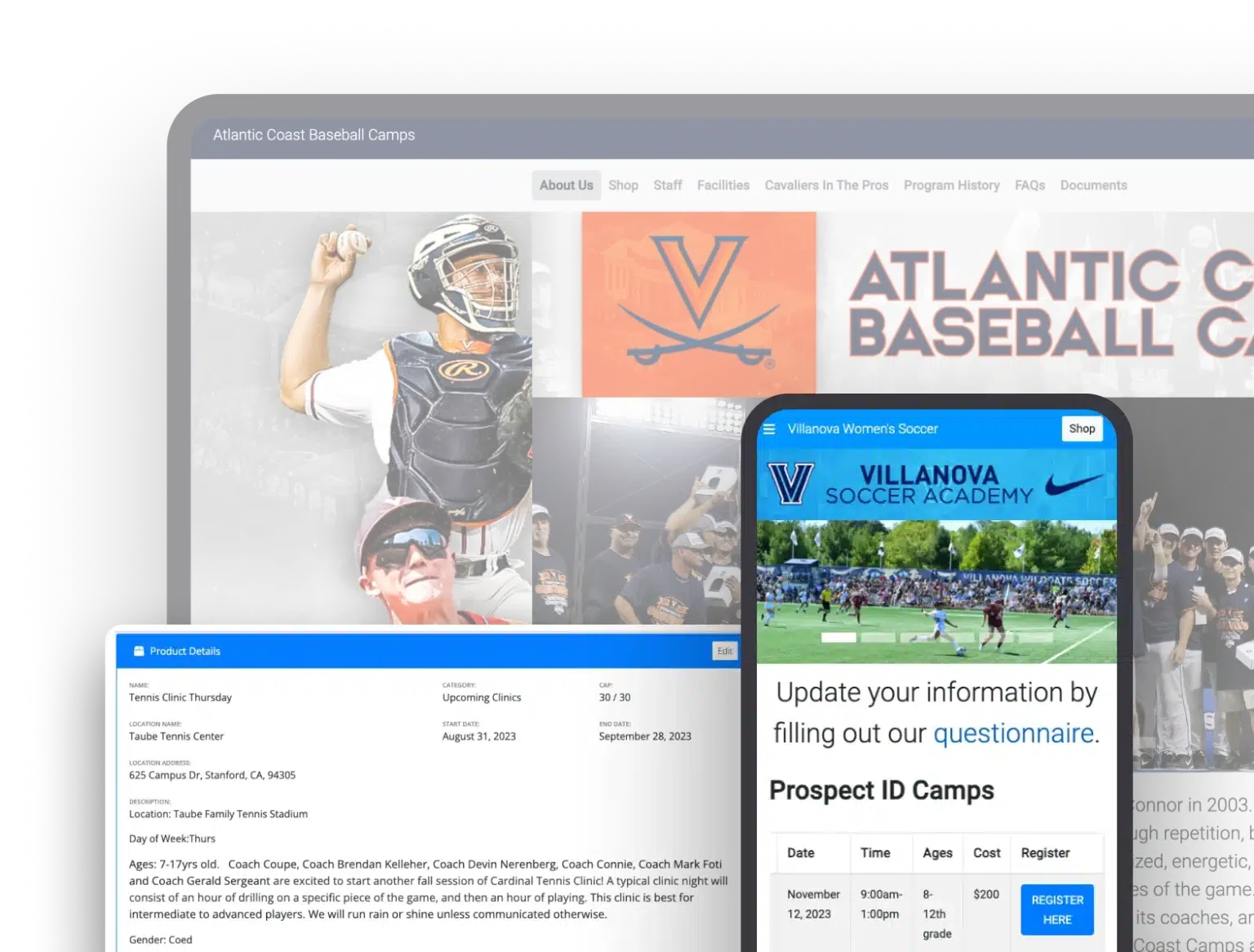 - **Grow Your Business: **Save time with unparalleled financial reporting and leverage your camps for future recruiting. Publish your own online store and sell branded merchandise to build an additional revenue stream.