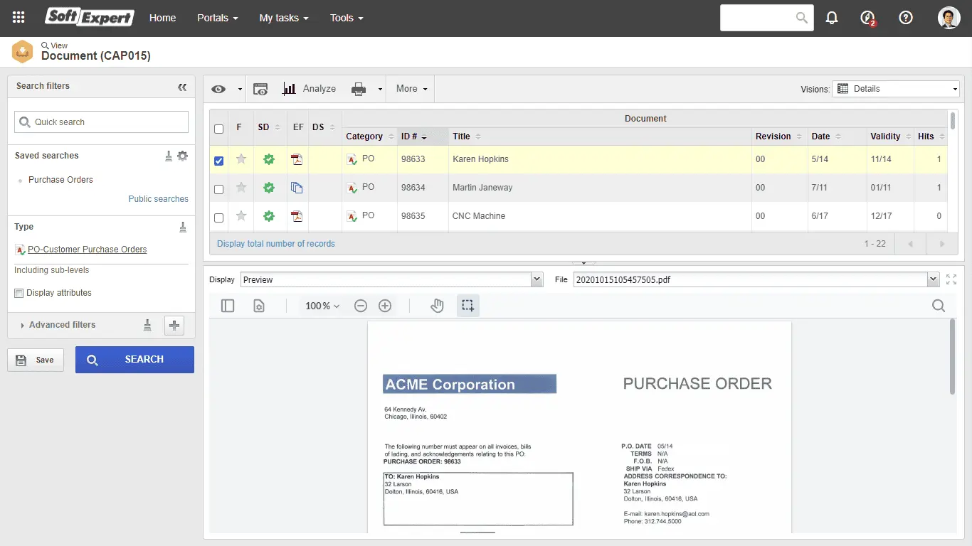 SoftExpert provides document capture software designed to automate the capture, processing, and management of documents. This software aims to enhance operational efficiency, ensure data accuracy, and reduce costs associated with manual document handling.