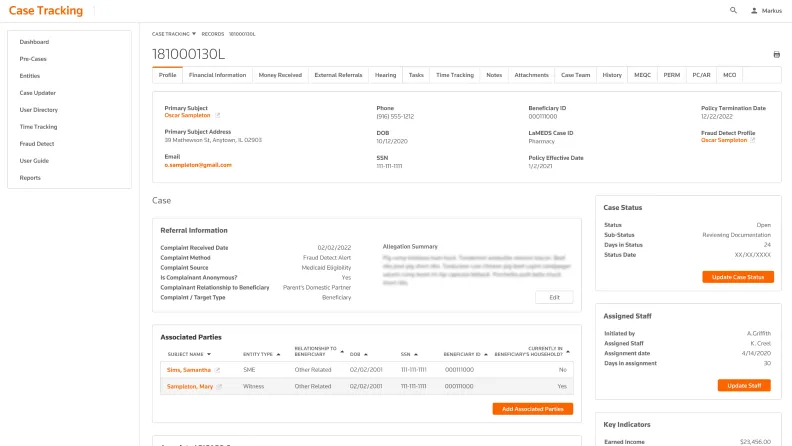 Manage referral assessments, case development, and prosecution outcome tracking to investigate and prevent fraud
