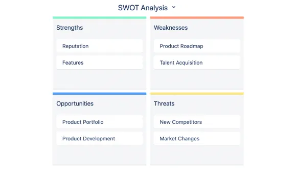 - Insert a SWOT Analysis, KANBAN or Product Experience board