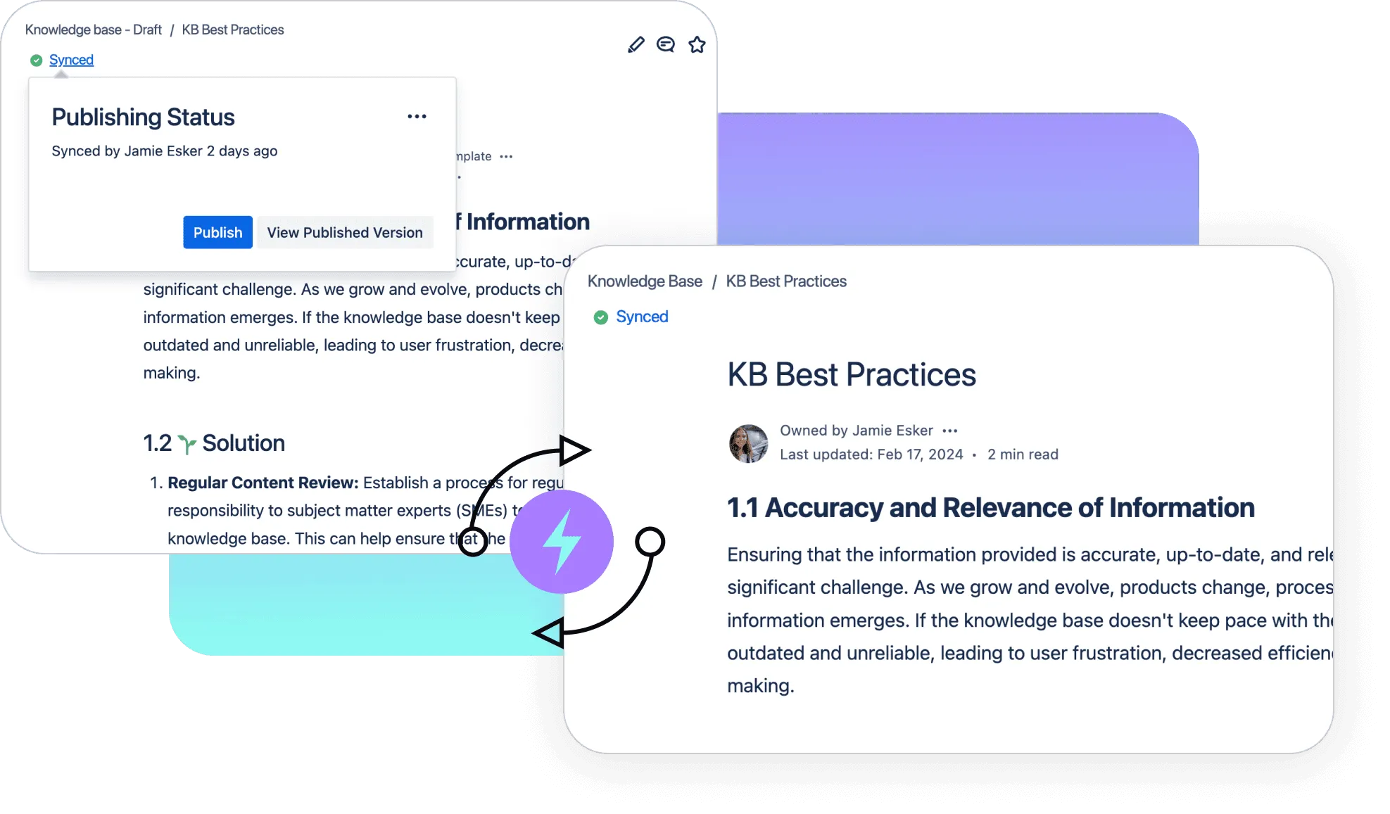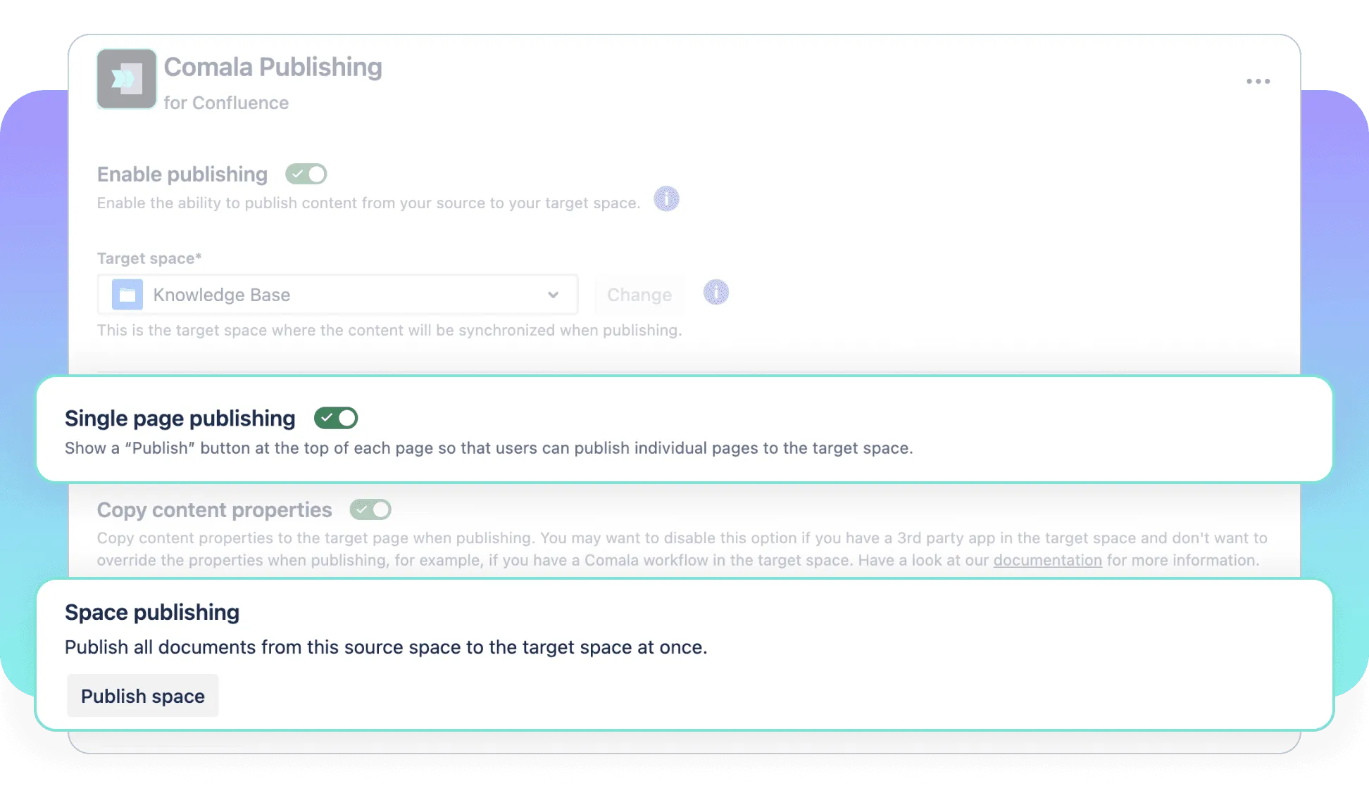 Publish individual pages as edits are made to accelerate access to updated content, or publish an entire space at once if a certain cadence is required.