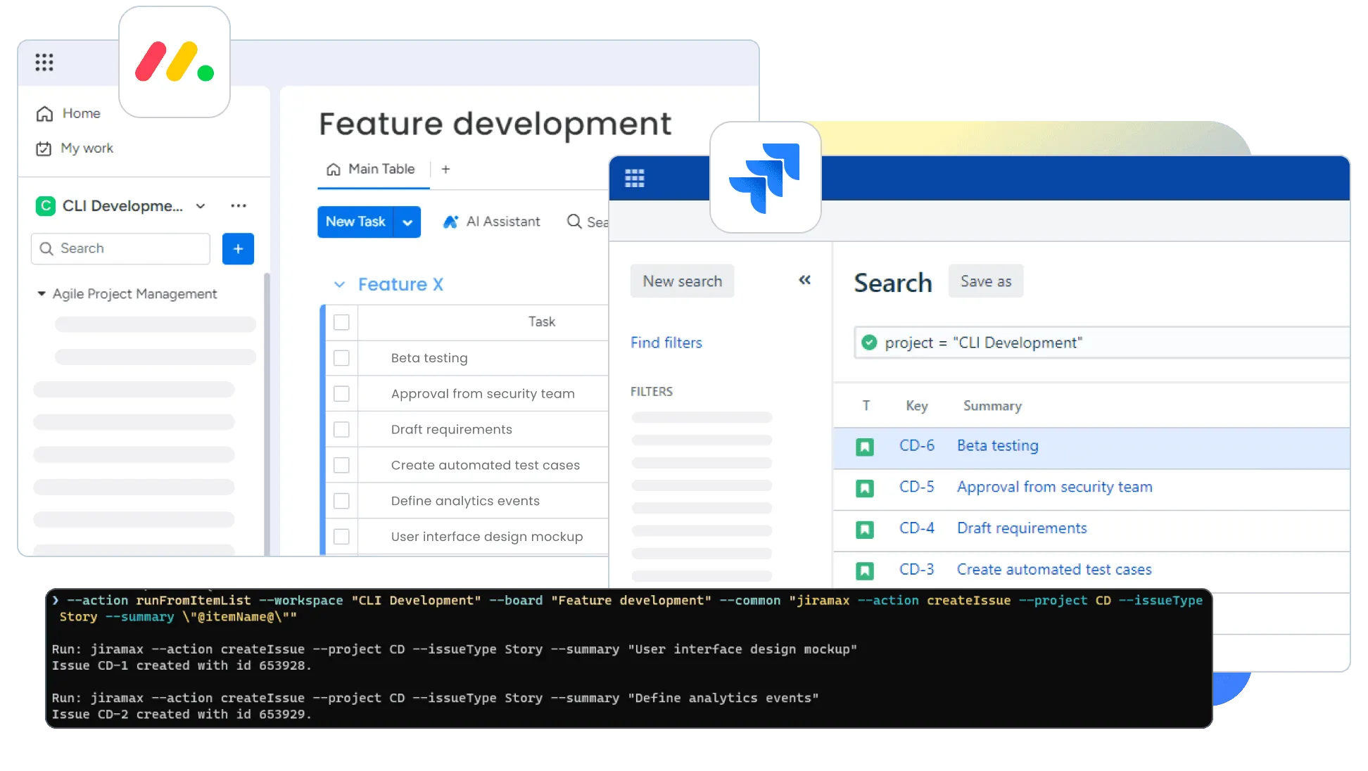 Automate tasks from a command line within monday.com