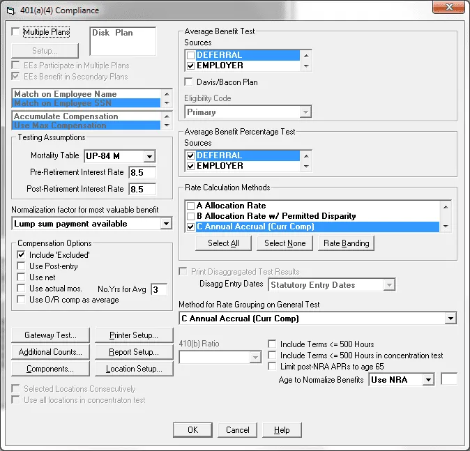 - Comprehensive Testing Capabilities: Performs a wide array of tests including 410(b), 401(a)(4), 402(g), 415, 416, 414(s), and more.