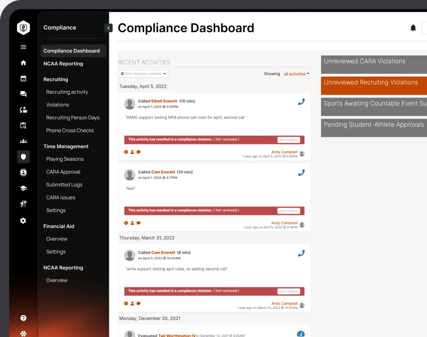 A comprehensive compliance platform to enable institutions to monitor their athletics program with confidence and maintain institutional control.