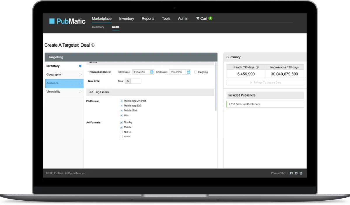 - Private Marketplaces: Set up deal IDs and private marketplaces for targeted advertising.