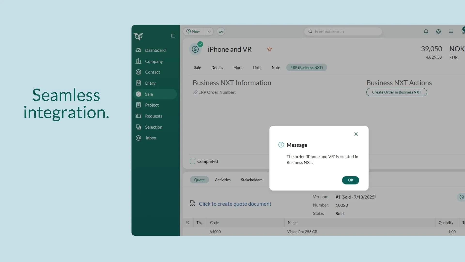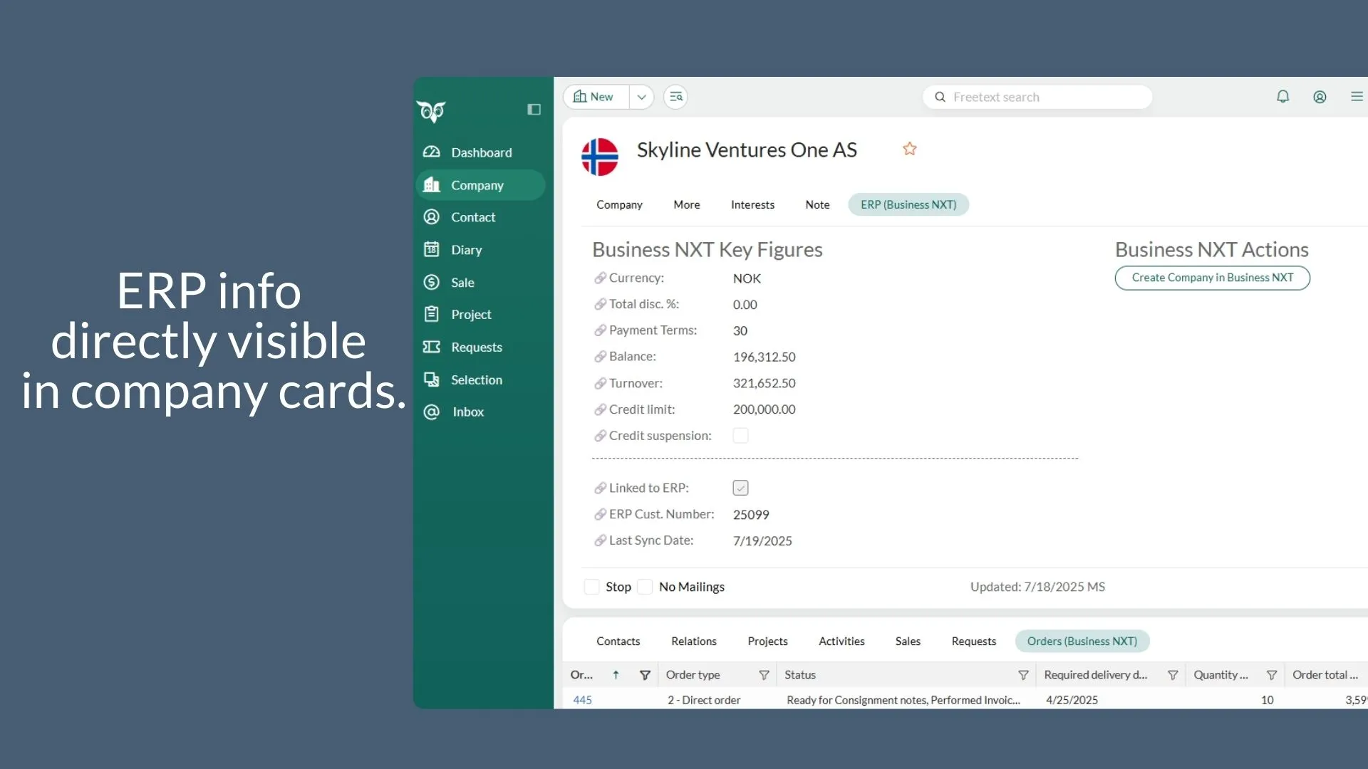 Combine the precision of Business NXT with the power of your CRM. Have all important data synced in one space within your SuperOffice CRM without the hassle of external apps.