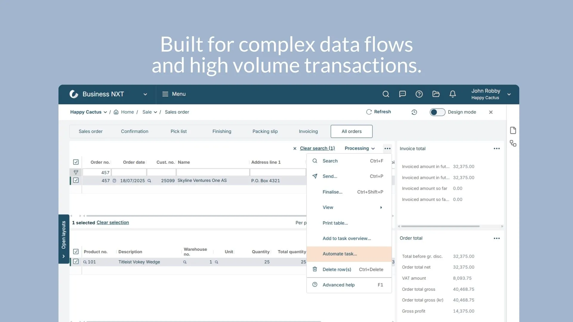 ConnectERP links your SuperOffice CRM with your Business NXT, giving you live access to prices, orders, and invoices right where your team works. Empower sales and marketing with real-time insights to spot opportunities, personalise outreach, and grow customer value.