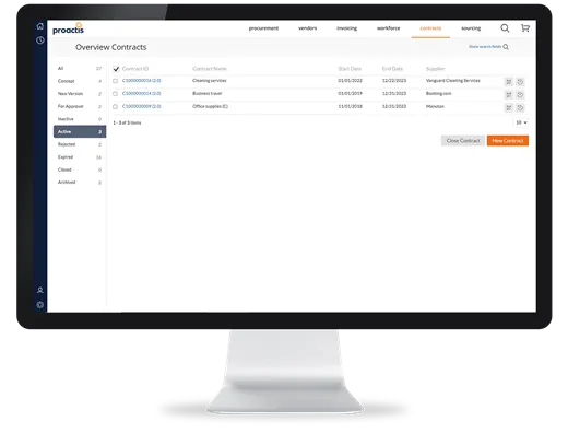 Manage and optimise contracts effortlessly and collaboratively. With Proactis you can increase the proportion of spend under management and on-contract by providing improved visibility and control of contracts throughout the contract lifecycle, and by ensuring that the organisation consistently utilises them when buying goods and services. All contracts can be recorded and stored centrally, so you will have complete visibility into all required contract information. You will also always have real-time insight into your financial liabilities and a reliable way of maintaining your extensive contract portfolio.